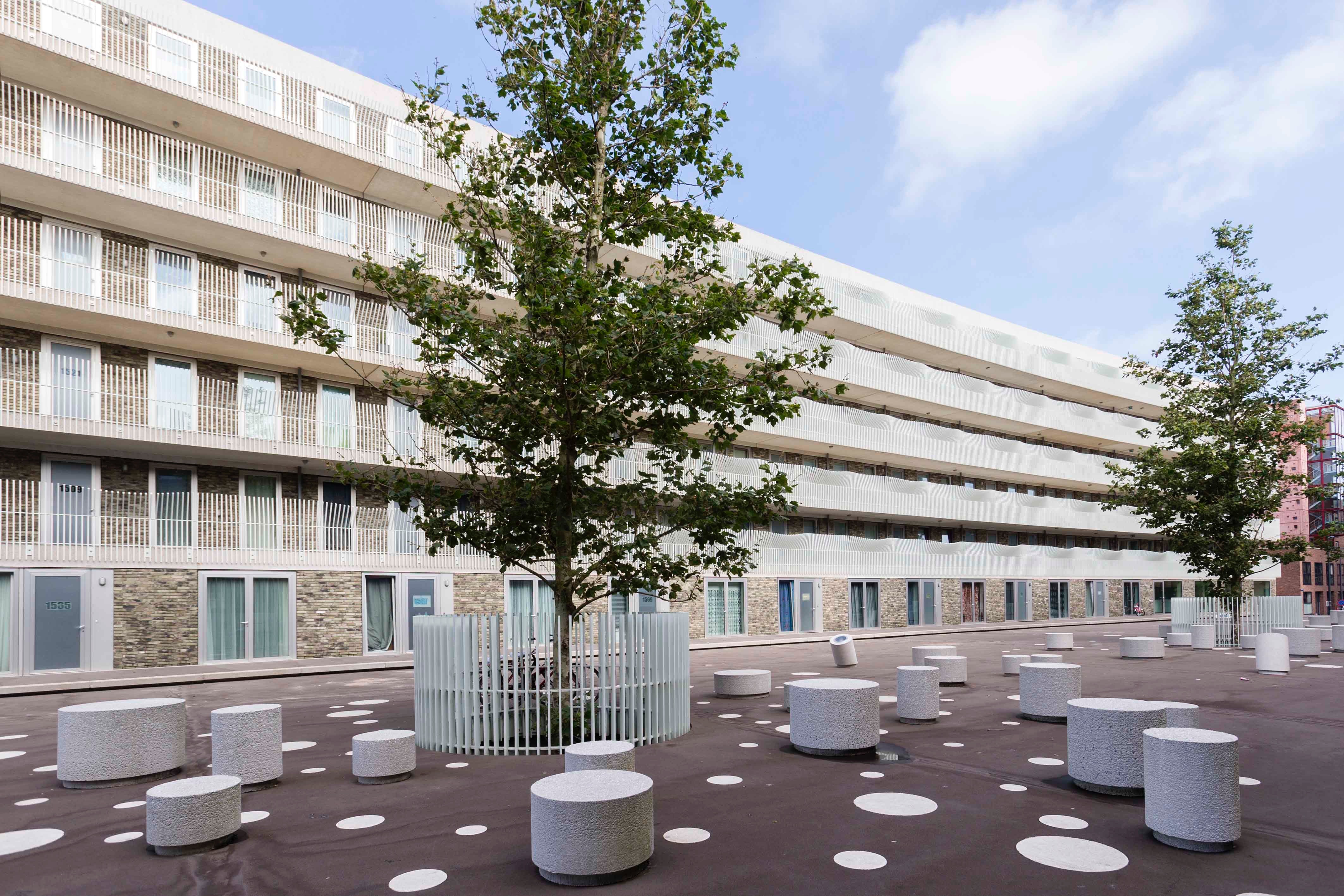 De opgave voor Blok 46c op Haveneiland Oost op IIburg in Amsterdam was het ontwerpen van een woongebouw, een plein en een half verdiepte parkeergarage. Door het woonblok te draaien is voor het gebouw een nieuw openbaar plein gerealiseerd. Het plein is nadrukkelijk opgenomen in het ontwerp. De galerijen krijgen een aangenaam karakter door aan het waaierende hekwerk aan de ene kant en de warme bekleding van western red cedar hout aan de woningzijde. Het geheel is opgetrokken in een speciale mix van warm grijs genuanceerde gevelstenen. Winnaar van de Zuiderkerkprijs 2012. De vijftiende Zuiderkerkprijs - voor het beste opgeleverde woningproject van 2012 - is toegekend aan Ymere voor Blok 46c op IJburg. Volgens de jury heeft Korth Tielens Architecten aangetoond dat met weinig middelen veel kwaliteit valt te realiseren. "Sociale woningbouw heeft zo langzamerhand een imago van schraalheid. Maar bij Blok 46c wordt overtuigend aangetoond hoe je met eenvoudige middelen veel kwaliteit kunt realiseren," aldus jury-voorzitter Arnold Reijndorp.
