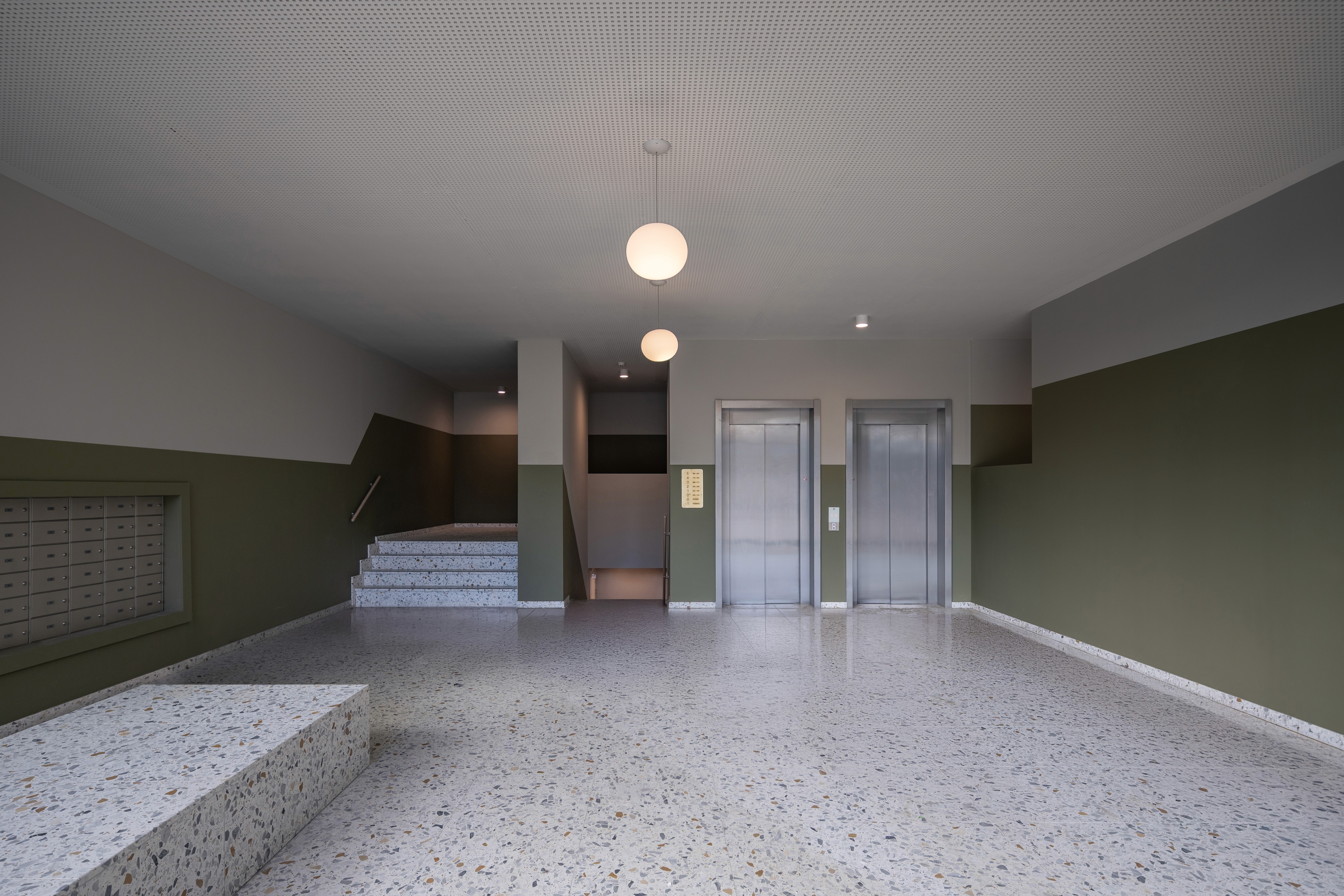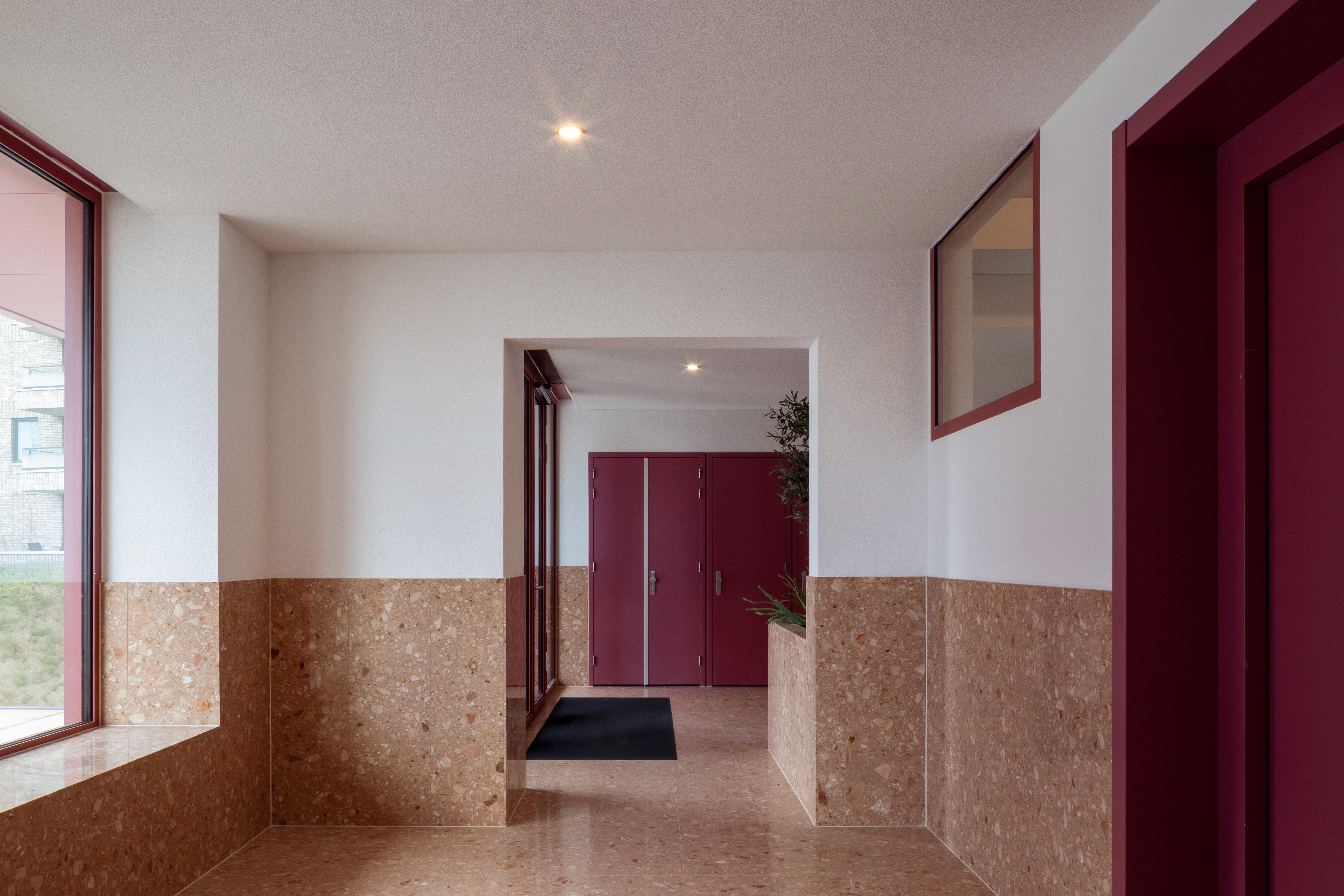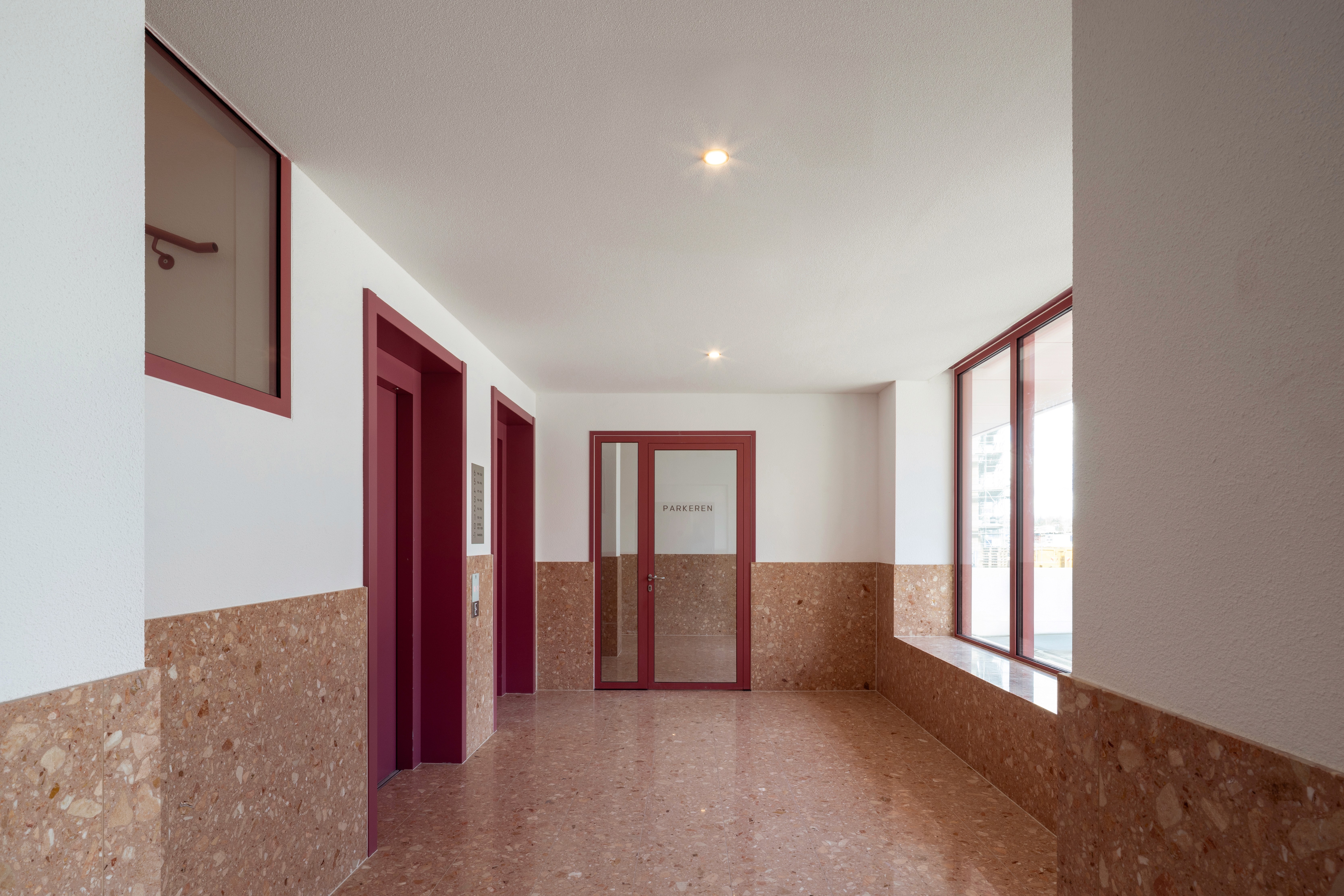 Elzenhagen is een stedenbouwkundig plan met urban villa’s in een parkachtig heuvellandschap op een voormalig sportveldenterrein in Amsterdam-Noord. Architectenbureaus Marcel Lok, Winhov en Korthtielens ontwierpen meerdere gebouwen voor dit plan. Voor de entreepartijen van de panden werd gekozen voor een terrazzo bevloering in tegels en maatwerk. De gekozen terrazzokleuren sluiten aan bij het uiterlijk van de gebouwen en geven de entree een warme en sfeervolle uitstraling. Ons terrazzo leent zich uitstekend voor maatwerk voor onder andere traptreden, plantenbakken en, zoals in het gebouw van Marcel Lok, het zitelement.