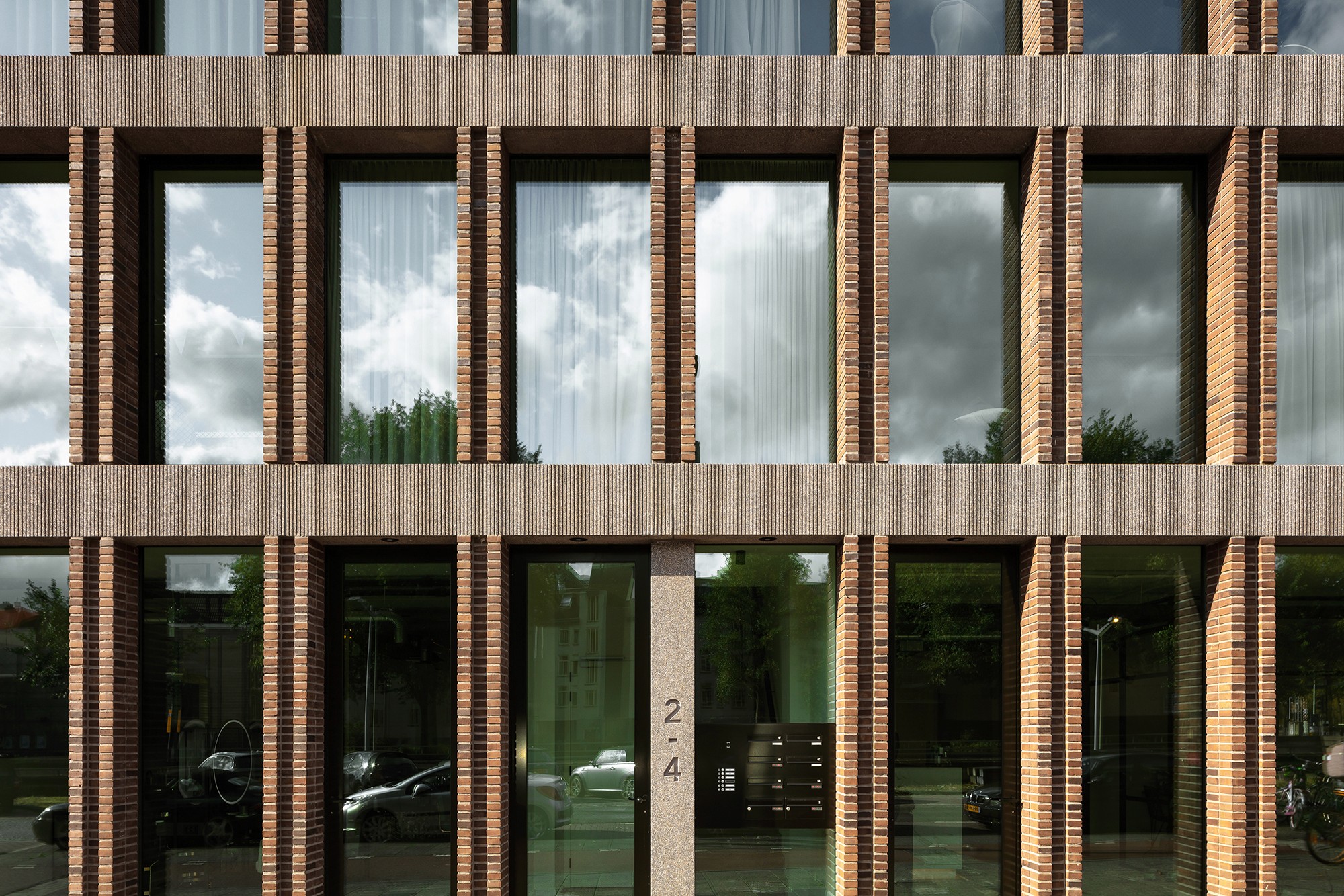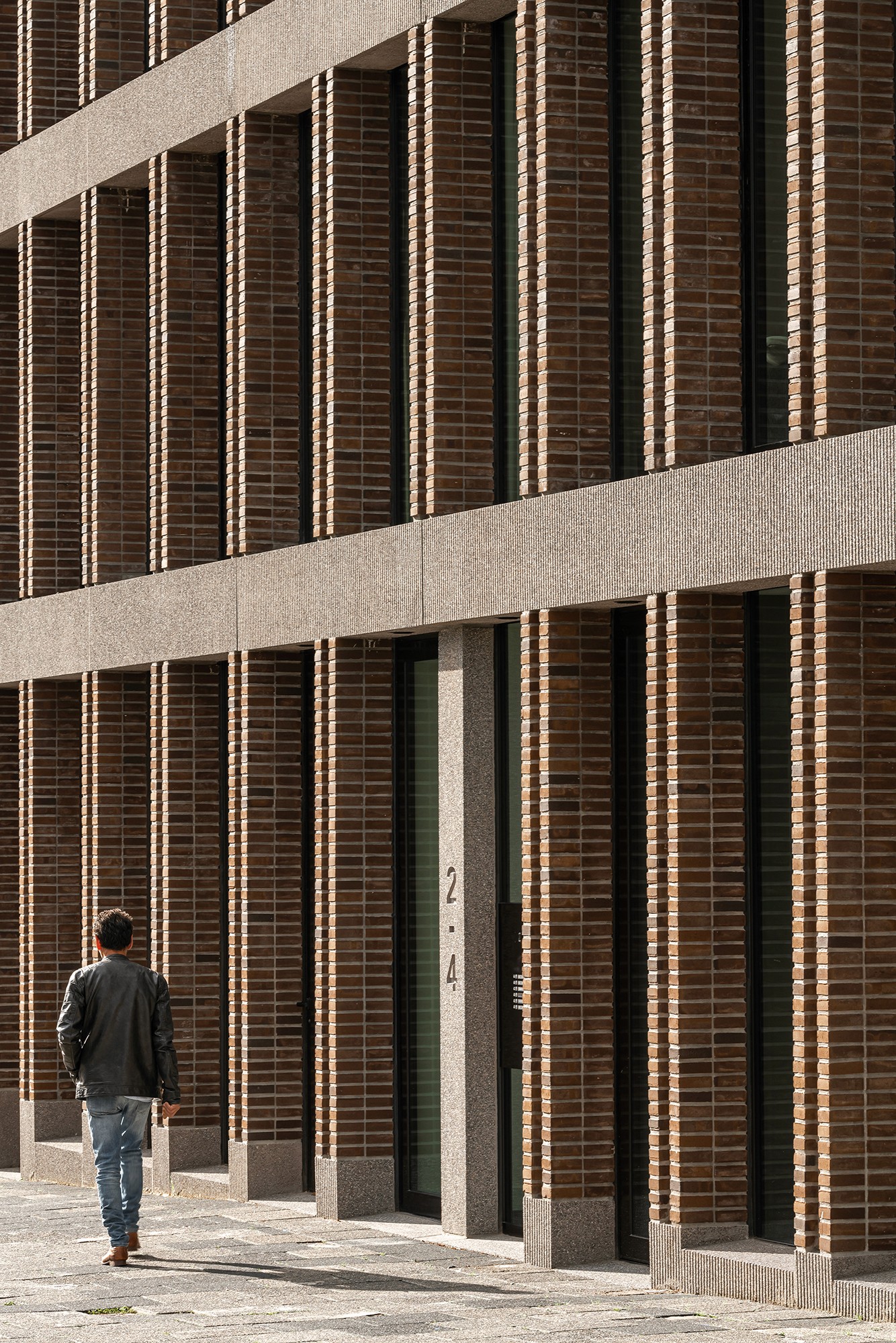 De opgave voor de architect betrof de invulling van een klein kavel aan de Foeliestraat in het centrum van Amsterdam, naast een rijksmonument. Daar waar historisch oud Amsterdam en de moderne stad elkaar ontmoeten, ontwierp Ronald Janssen Architecten een imposant gebouw dat uniek en vernieuwend is en tegelijkertijd het bestaande straatbeeld respecteert. Het gebouw is op een sokkel geplaatst. Op die manier is het hoogteverschil met het pakhuis ernaast opgelost. Door de kleine schaal, het opgeloste hoogteverschil en de schuin aflopende bovenste verdieping, sluit het pand goed aan op zijn buur. Daarnaast refereren de horizontale betonnen gevelbalken in het nieuwbouwproject aan de balken in de kopgevel van het belendende monument aan de Prins Hendrikkade. De opvallende bakstenen gevel houdt het verkeerslawaai goed genoeg buiten om als geluidsscherm te fungeren, waardoor de achtergevel grotendeels van glas kon worden gemaakt. De kozijnen zijn uitgelijnd met het bakstenen raster aan de voorkant, om ze aan het zicht te onttrekken maar ook omdat glas geluid beter buiten houdt dan aluminium kozijnen. Ondanks de ferme en strakke uitstraling, zijn er van dichtbij zeer zorgvuldige details op te merken. Zo is er bijvoorbeeld gemetseld met de kopse kanten en strekken van de bakstenen. Daarnaast zijn de huisnummers meegenomen in de betonnen bekisting. Dit zorgt ervoor dat het gebouw ondanks zijn robuuste uitstraling, toch verfijnd is. (Bron: ARCAM en ArchDaily)