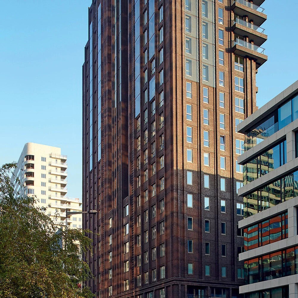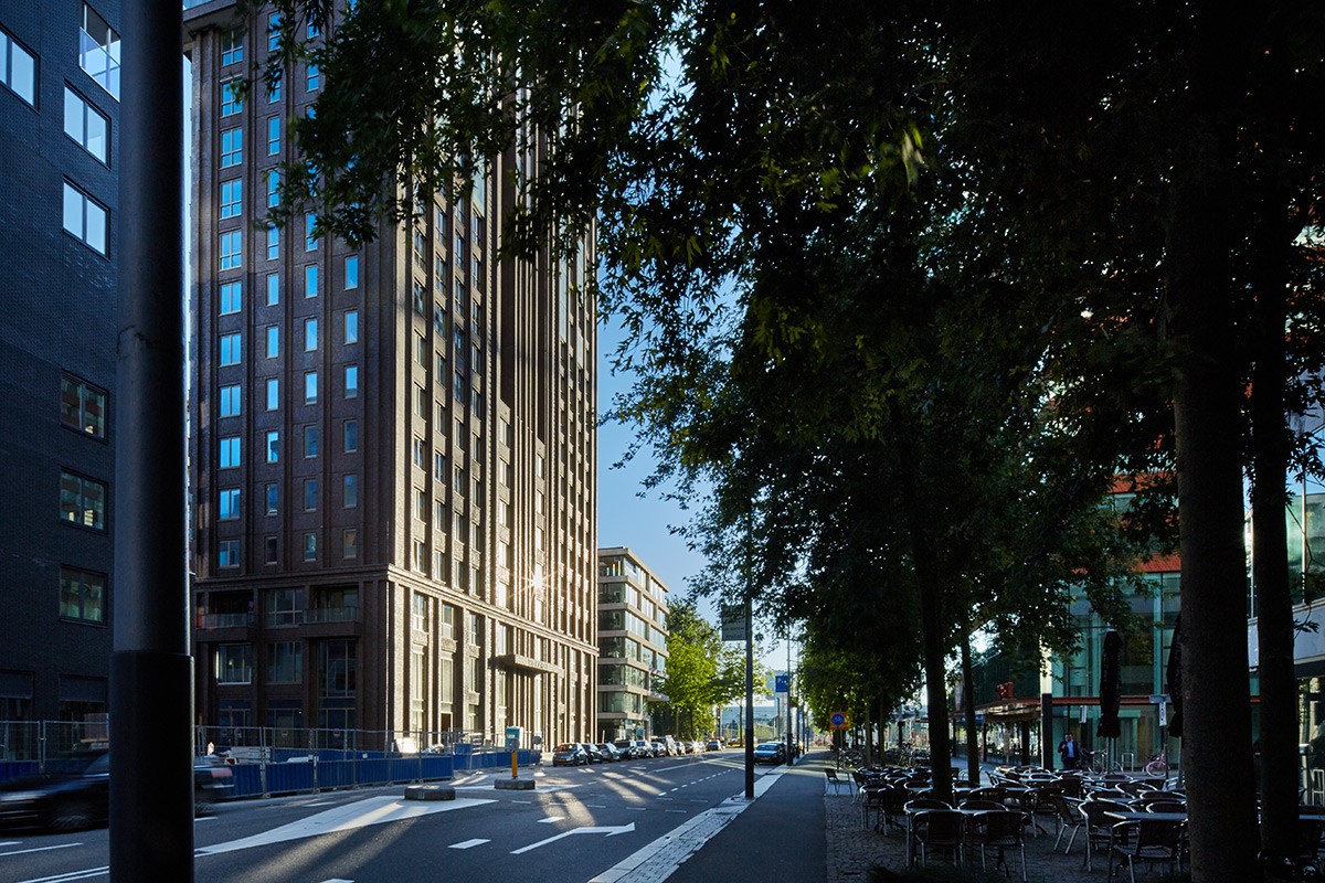 Architect Rik Bakker van Inbo Amsterdam noemt het metselwerk aan de gevels de belangrijkste drager van het concept achter de woontoren: “Het metselwerk bezorgt 900 Mahler de gewenste stadse en stijlvolle uitstraling en geeft het gebouw bovendien een duurzaam en tijdloos karakter.” Het metselwerk, strengpers gevelstenen in waalformaat, werd voor deze woontoren volledig geprefabriceerd. De prefab metselwerkelementen hebben een hoogte van 3,3 meter en variëren in breedte van drie tot 5,7 meter. De elementen zijn opgebouwd als sandwichelementen, met een betonnen binnenblad, een harde isolatie en een buitenblad uit 82 mm beton en 48 mm strengpersstenen. Het voegwerk aan de woontoren is donkergrijs, om de gevelsteen en de metselverbanden extra te accentueren. (bron: www.architectuur.nl)