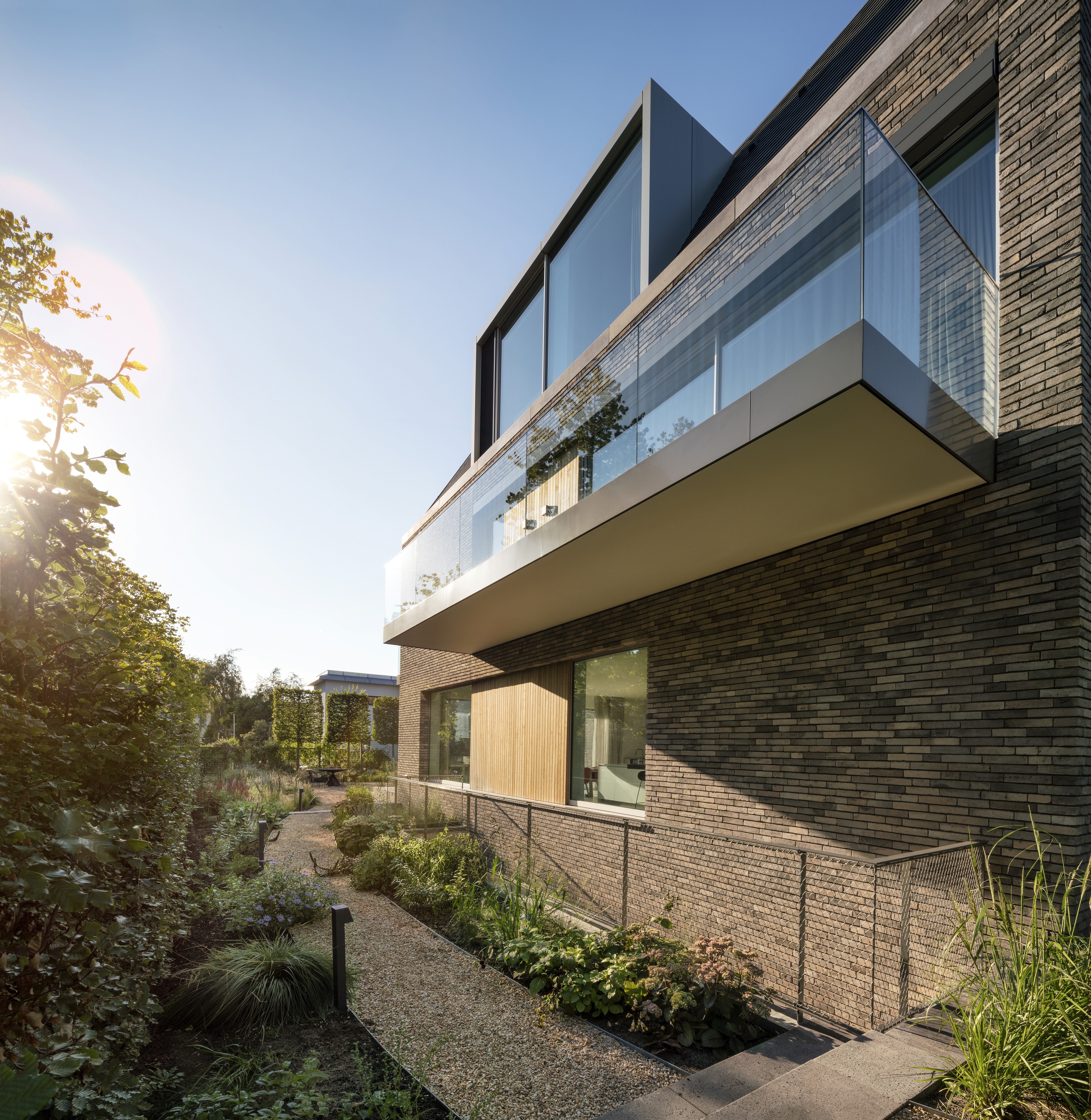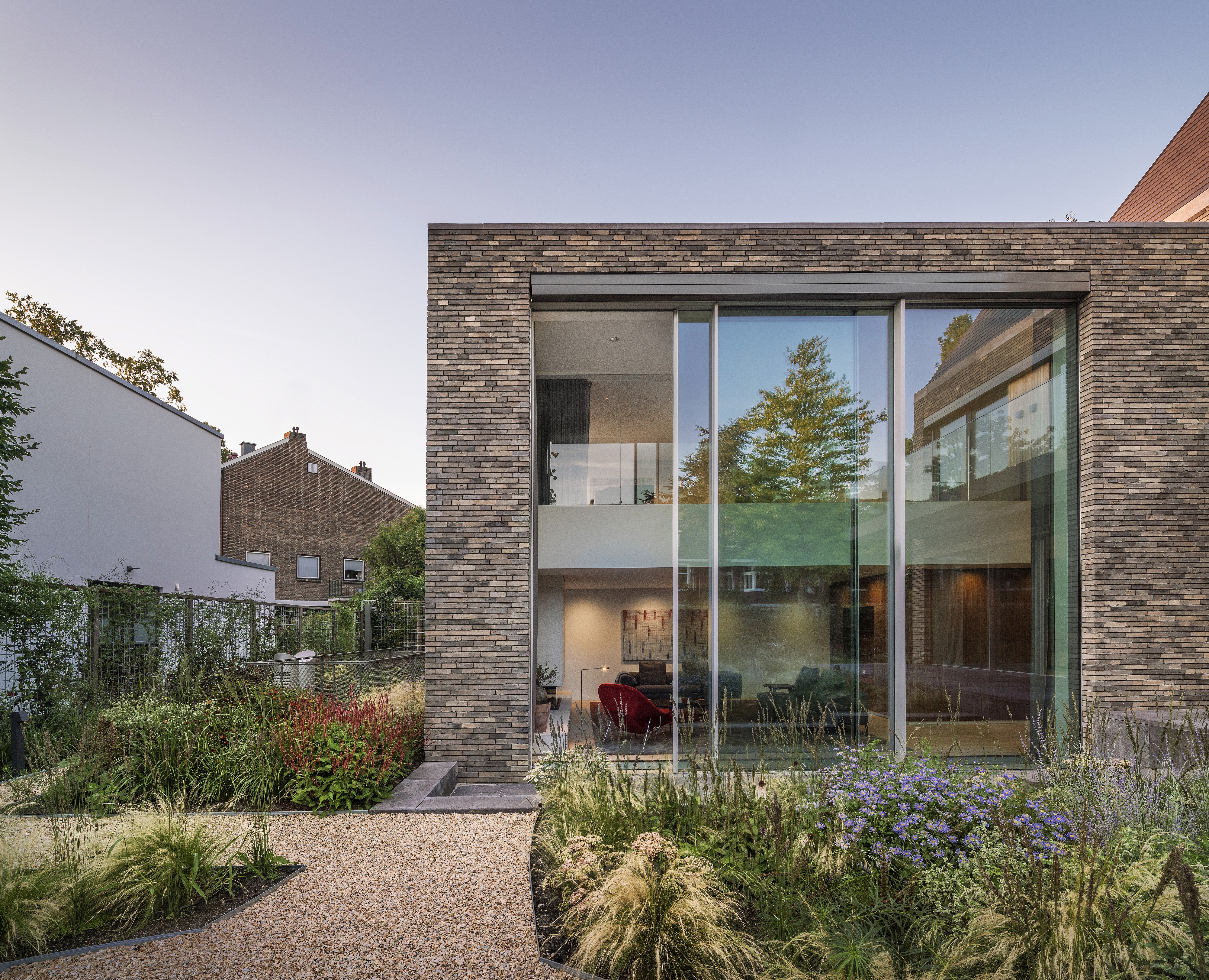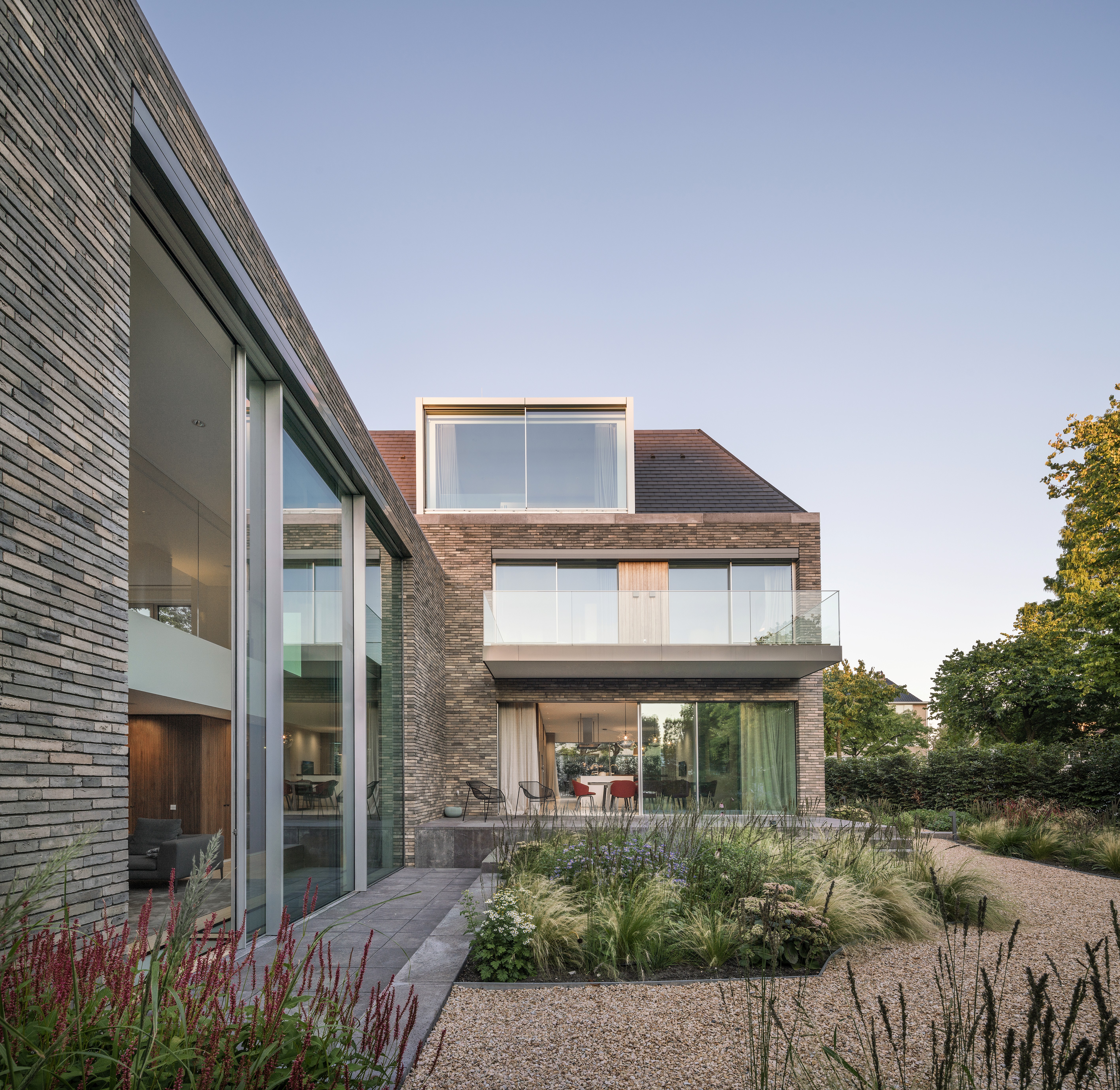 Deze stadsvilla in Amsterdam-Zuid is gebaseerd op de vorm van de voormalige notariswoning. De villa van 1000 m² beschikt over een grote keuken, eetkamer en woonkamer op de begane grond. In al deze gezinsruimtes is een subtiele balans tussen privacy en transparantie. De ruimtes hebben een prachtige relatie met de tuin, die ontworpen is door Piet Oudolf. Ondergronds is een prachtig lichte ruimte gerealiseerd met zwembad en spa. Op de tussenverdieping bevindt zich de studeerkamer in de dubbelhoge vide in de woonkamer. De kinderkamers met eigen badkamer bevinden zich op de eerste verdieping en op de bovenste verdieping is een fantastische hoofdslaapkamer gecreëerd met prachtig uitzicht over Amsterdam. In de materialisatie en detaillering is het huis verfijnd en royaal. Samen met de architect kozen we voor prachtig gekleurd metselwerk. Het verfijnde metselwerk en het toepassen van keramische leien, sluit aan bij de lokale historische architectuur.