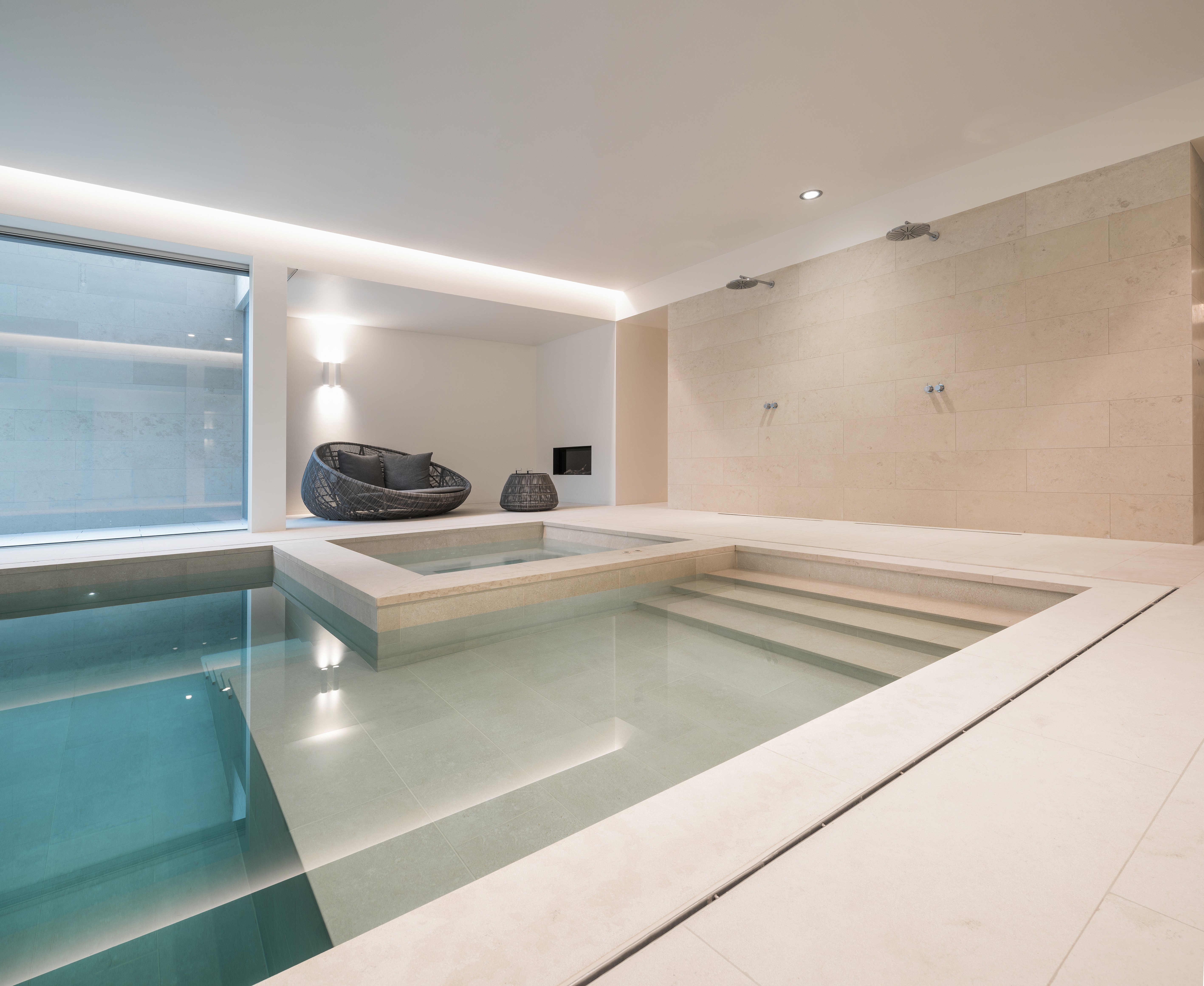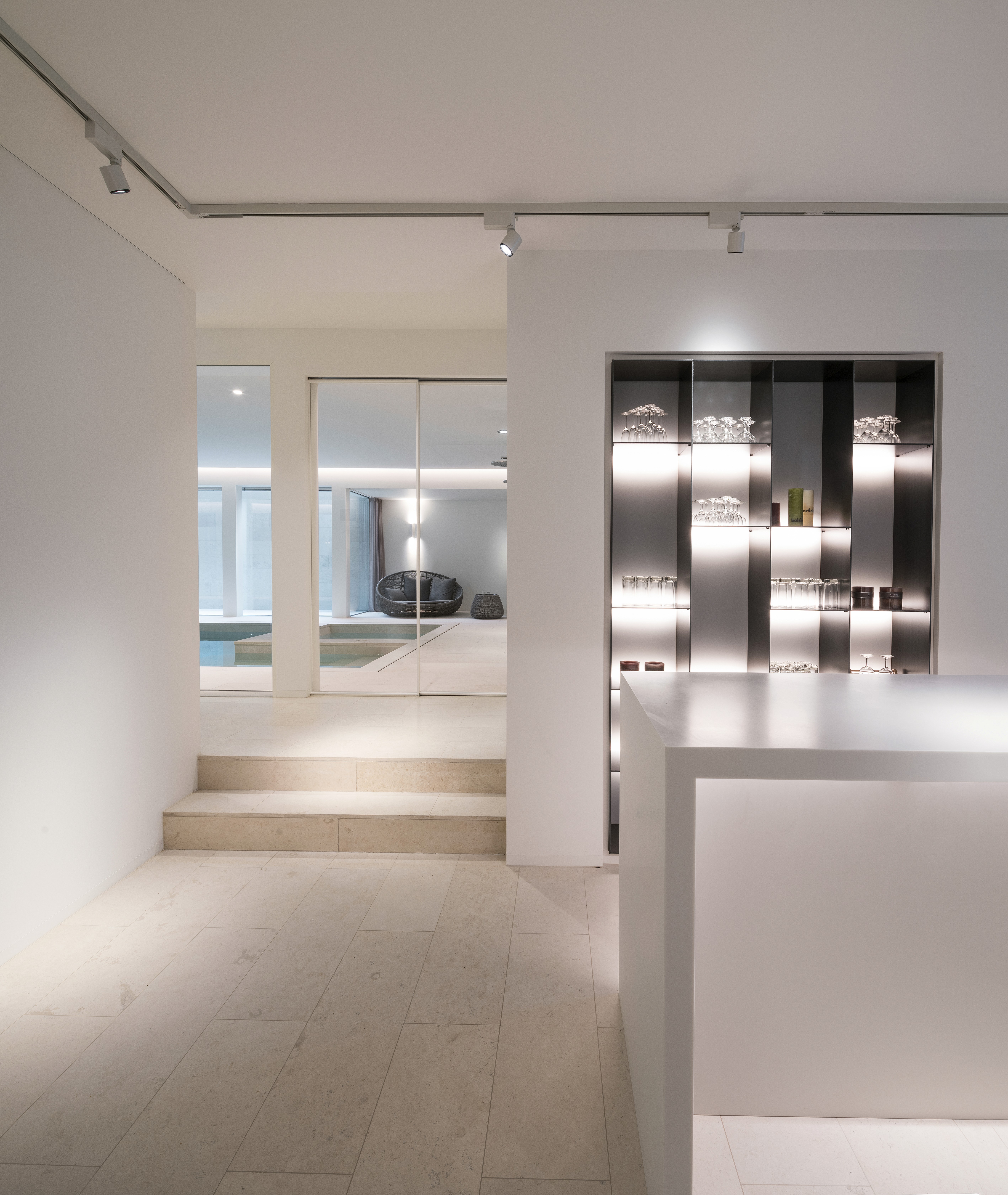 Deze stadsvilla in Amsterdam-Zuid is gebaseerd op de vorm van de voormalige notariswoning. De villa van 1000 m² beschikt over een grote keuken, eetkamer en woonkamer op de begane grond. In al deze gezinsruimtes is een subtiele balans tussen privacy en transparantie. De ruimtes hebben een prachtige relatie met de tuin, die ontworpen is door Piet Oudolf. Ondergronds is een prachtig lichte ruimte gerealiseerd met zwembad en spa. Op de tussenverdieping bevindt zich de studeerkamer in de dubbelhoge vide in de woonkamer. De kinderkamers met eigen badkamer bevinden zich op de eerste verdieping en op de bovenste verdieping is een fantastische hoofdslaapkamer gecreëerd met prachtig uitzicht over Amsterdam. In de materialisatie en detaillering is het huis verfijnd en royaal. Samen met de architect kozen we voor prachtig licht natuursteen als vloerafwerking voor keuken en de ondergrondse spa.