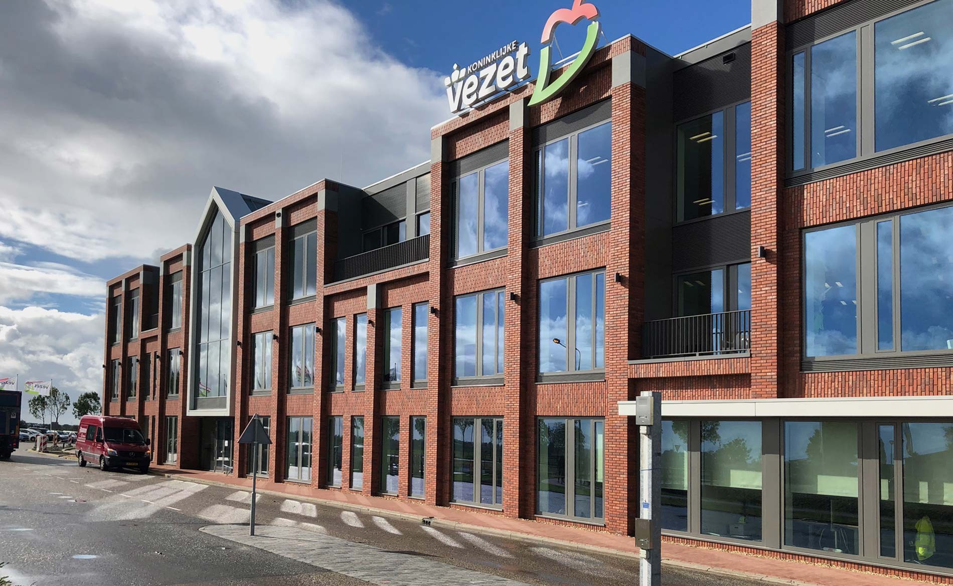 Voor Koninklijke Vezet en G. Kramer & Zonen Beheer heeft BBHD architecten een nieuw hoofdkantoor ontworpen aan de Debbemeerweg in Warmenhuizen op het eigen terrein van Vezet. Koninklijke Vezet is marktleider in de Fresh Food branche en daarmee zelfs de grootste in Europa op het gebied van gemaksgroente, gesneden fruit, salades en koelverse maaltijden. Het bedrijf levert een belangrijke economische bijdrage aan de regio en werkt nauw samen met lokale agrarische bedrijven. Het kantoorgebouw van drie bouwlagen staat bij de oostelijke entree van bedrijventerrein Oudevaart en wordt het markante gezicht voor zowel Koninklijke Vezet als het bedrijventerrein als geheel. De architectuur van het gebouw is geïnspireerd op het voormalige zuurkoolfabriekje dat ooit op het terrein stond. Het is een alzijdig gebouw dat rondom een atrium is georganiseerd. Voor dit project kwamen we samen met de architect en opdrachtgever tot de keuze van een unieke projectgebonden oer-Hollandse mix gevelstenen.